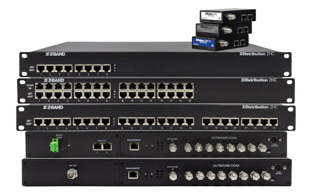 Z-Band's easy-to-install solutions distribute high-quality video using your existing network infrastructure, whether you use local area networks (LAN), coaxial cables, fiber optic or other configurations. Our self-balancing system allows for exceptional convergence of voice data and video over a single-use cable.